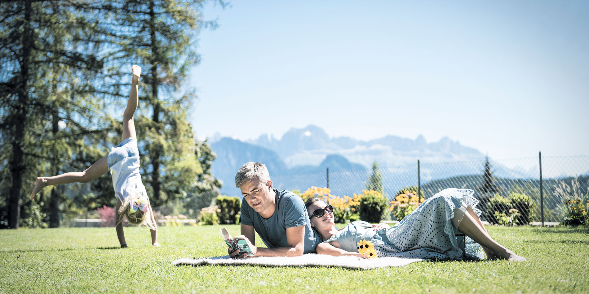 - Familien steht im Family Spa ein eigener Familien-Ruheraum mit ausgewählten Bilder- und Kinderbüchern, Blick auf den Park und die Südtiroler Bergwelt und direktem Zugang zur Liegewiese am Pool zur Verfügung.