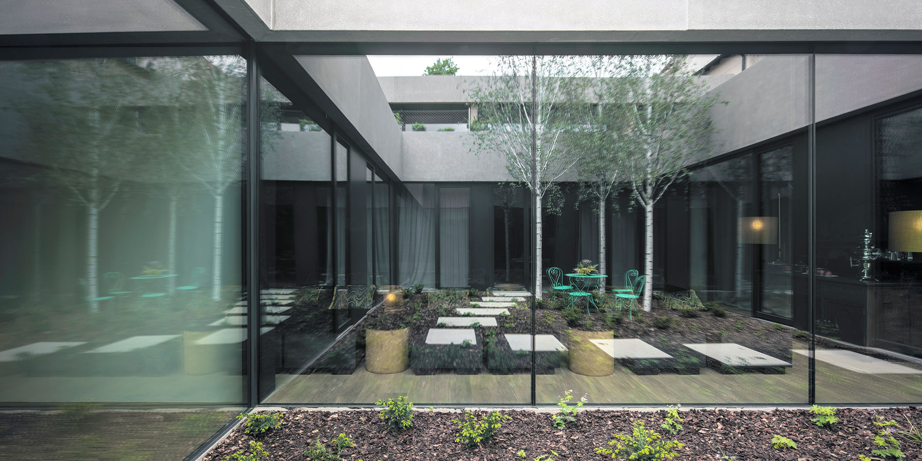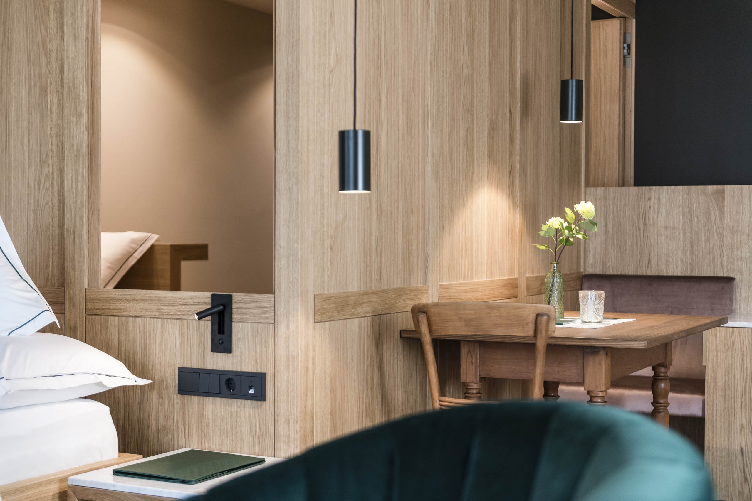 Die Erweiterung des Dachgeschosses und der Ausbau des historischen Turms waren ein wichtiger Bestandteil des Umbaus, dessen oberste Prämisse die Suche nach einer zeitlosen Architektur, nach einem Bindeglied zwischen Vergangenheit und Gegenwart war. So ist das Holzner heute ein Haus der Kontraste, die sich in jedem Bereich stimmig zueinandergesellen und überzeugende Synergien schaffen: Leib und Seele. Jugendstil und Sichtbeton. Wilde Natur und urbaner Flair. Alpenglühen und Orient. Groß und Klein.