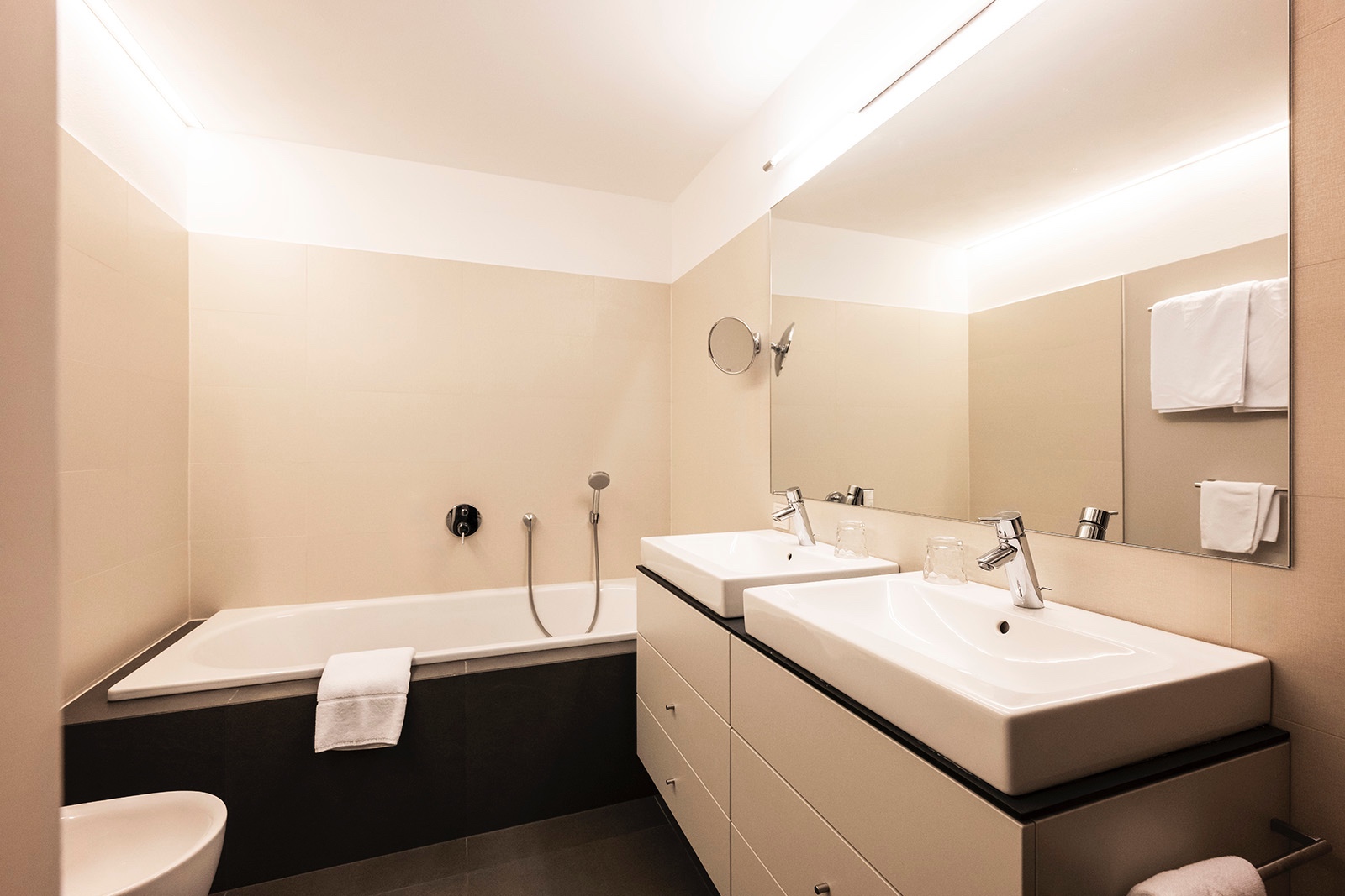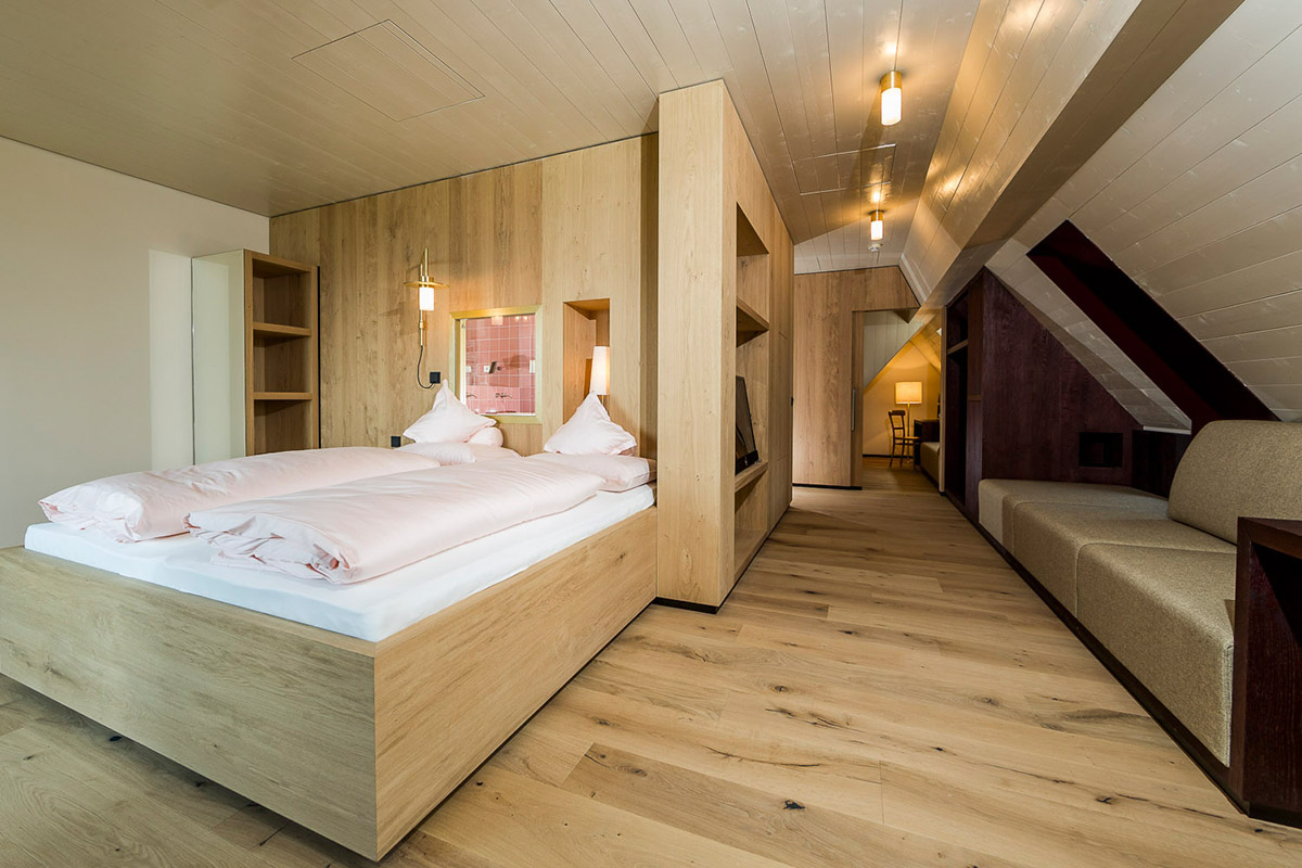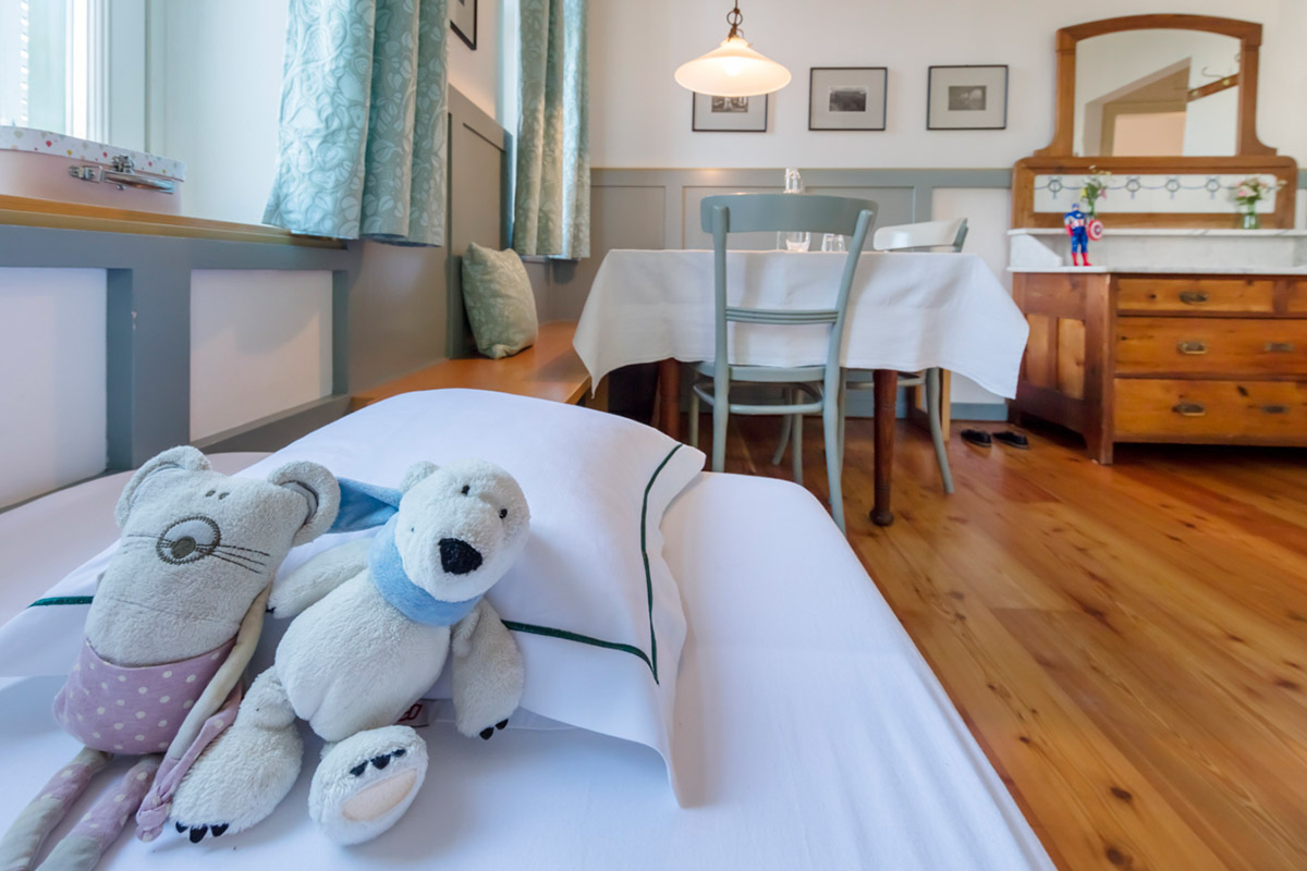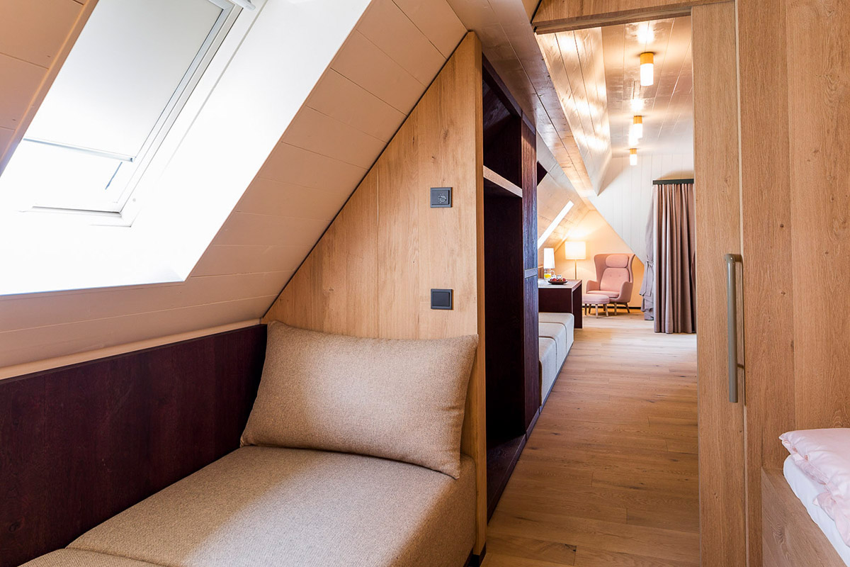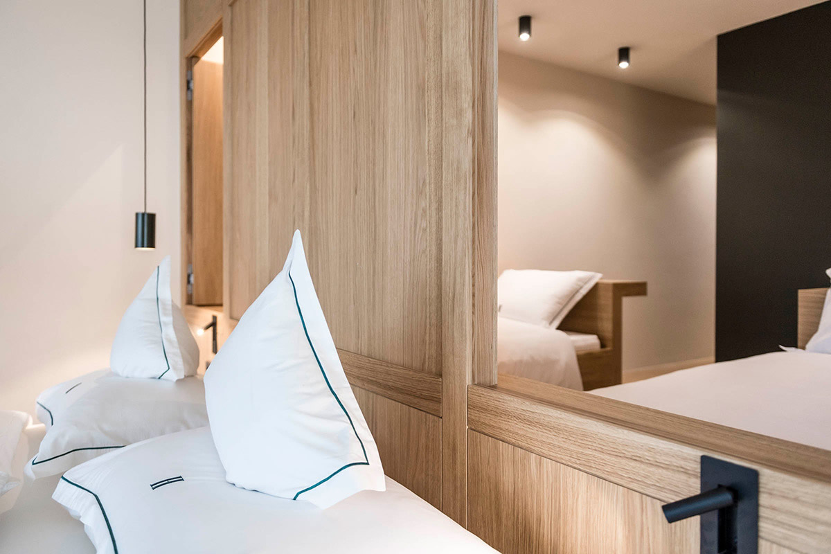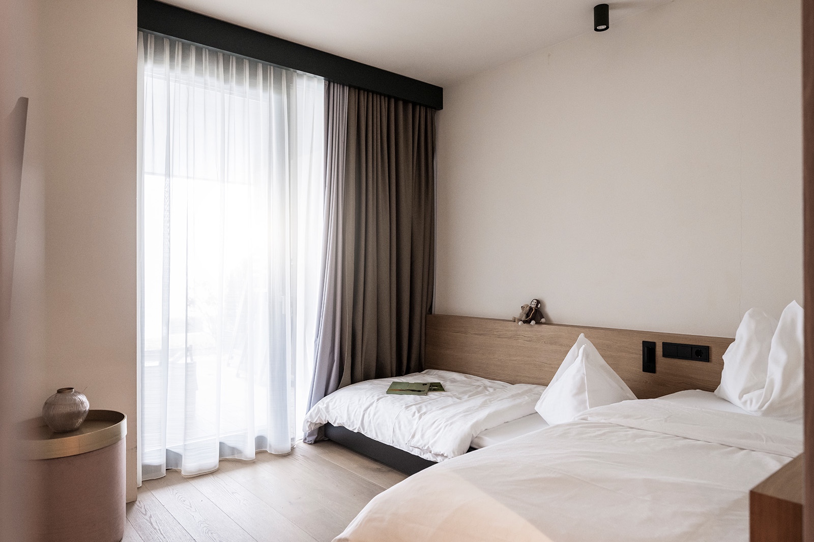 Im Erdgeschoss des Haupthauses befinden sich unsere Familiensuiten Latemar, die erst 2022 einer Rundumerneuerung unterzogen wurden. Das moderne Ambiente gibt sich mit edlen Stoffen und viel Holz gemütlich und stilvoll. Zwei Schlafzimmer und der ...
