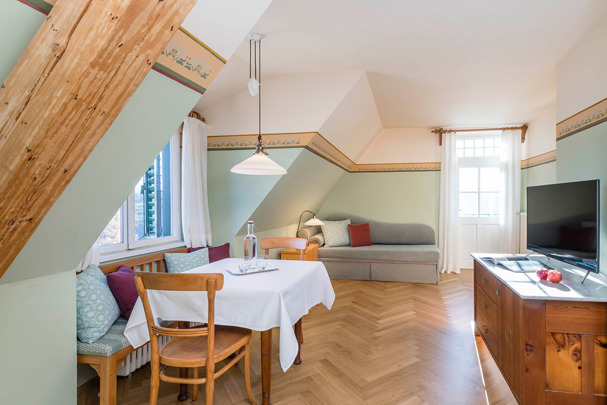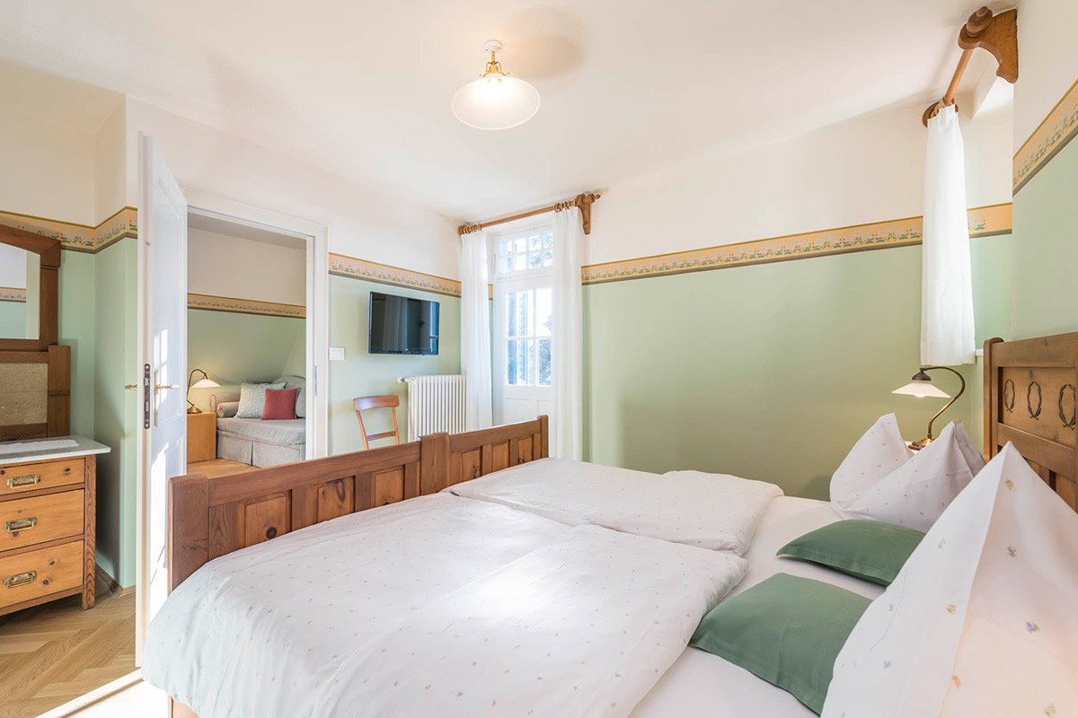 Die historischen Ortler-Suiten befinden sich in unserem Haupthaus und verfügen über zwei getrennte Räume. Damit bieten sie Platz für kleine Familien in historischem Ambiente. Sie liegen auf der Nordseite des Hauses und bieten vom ...