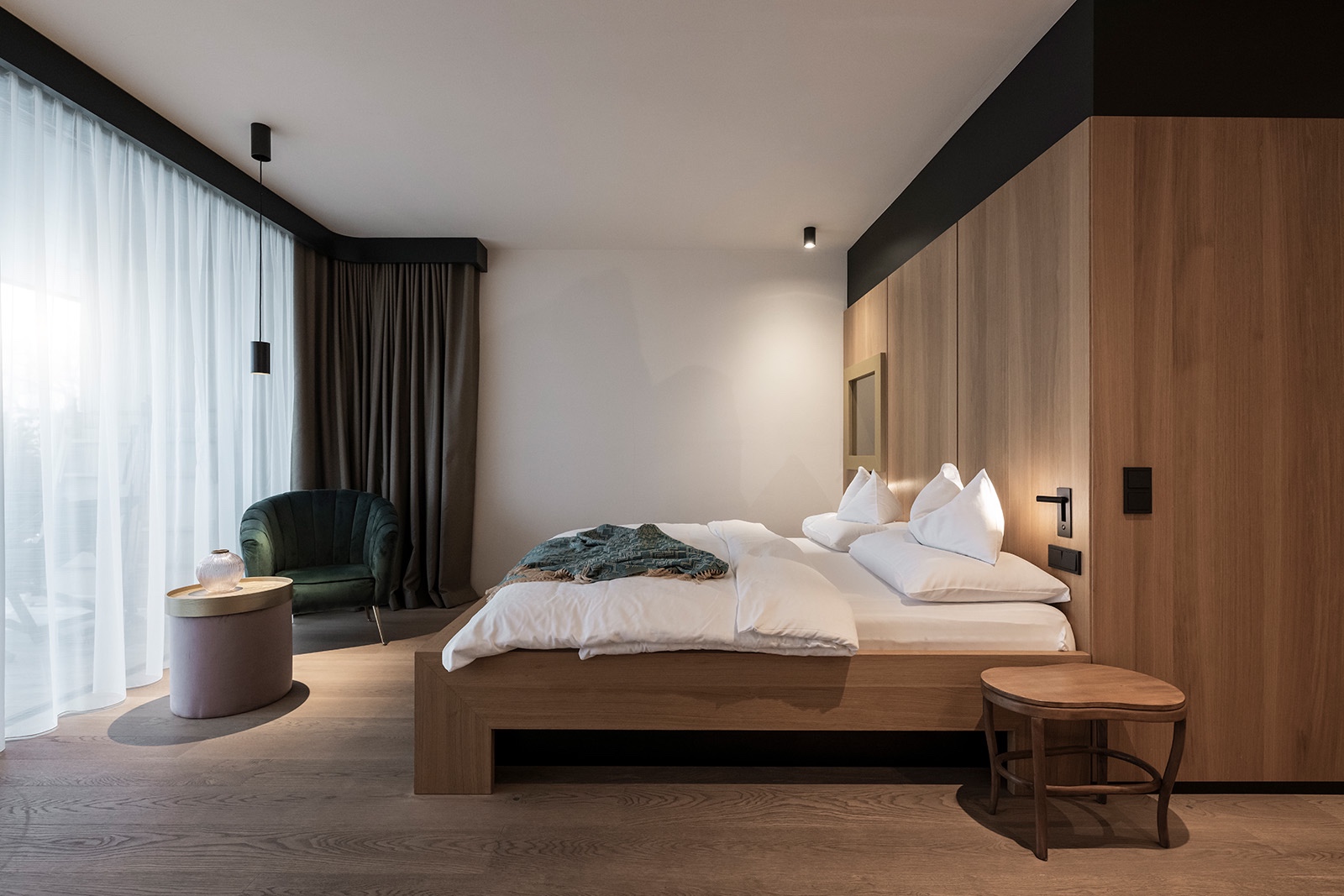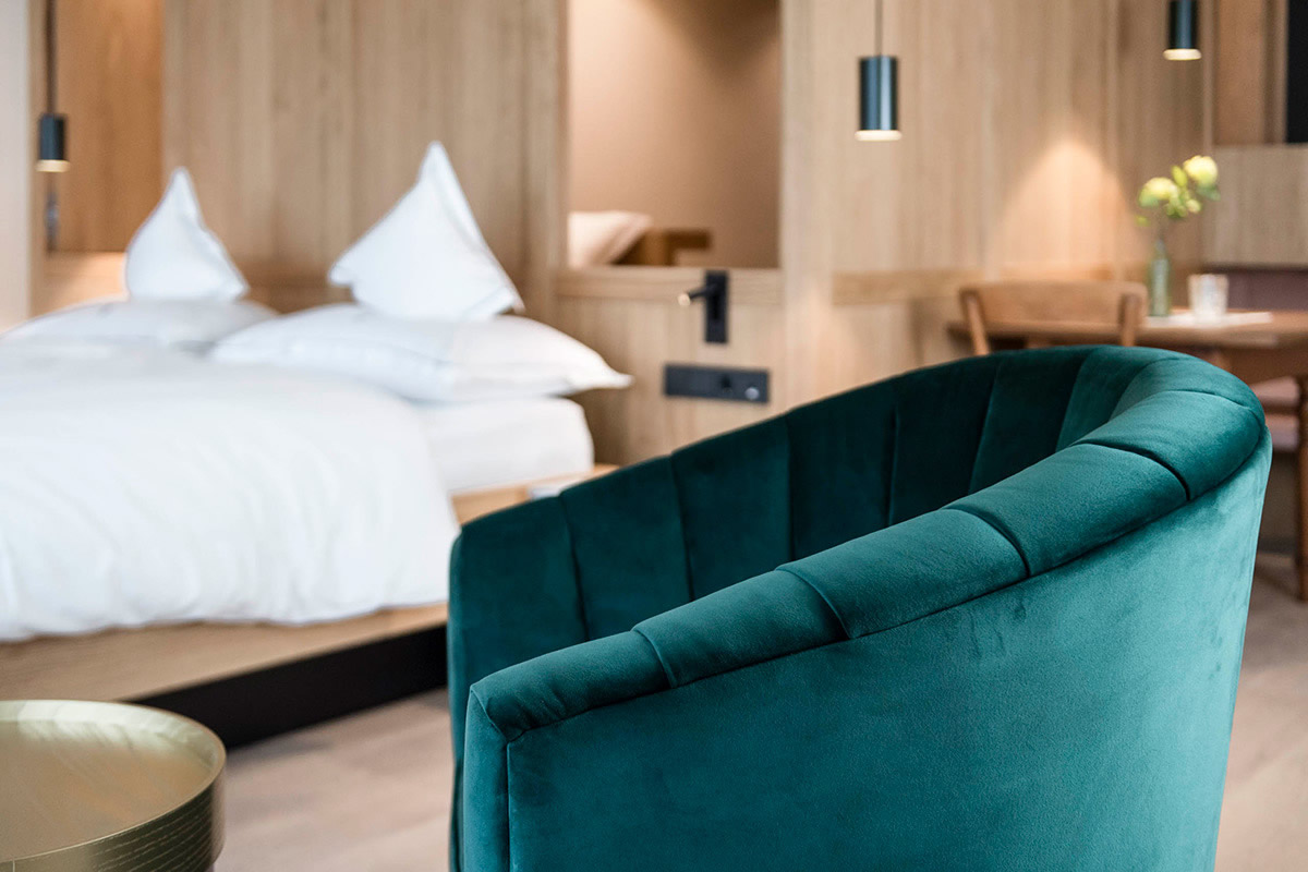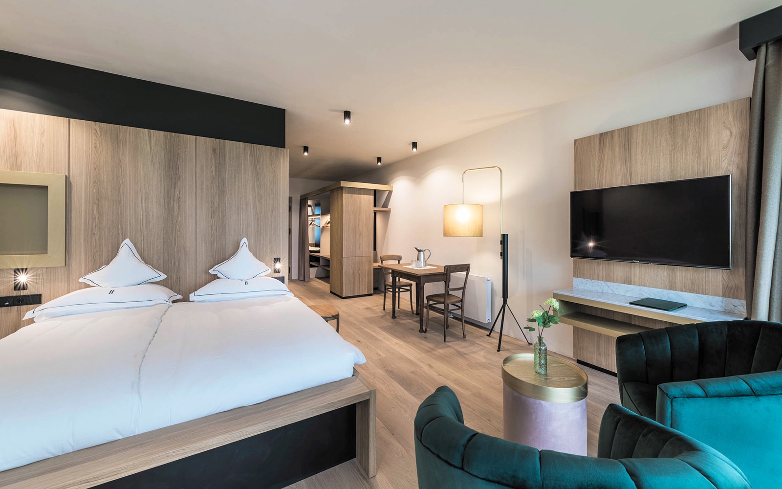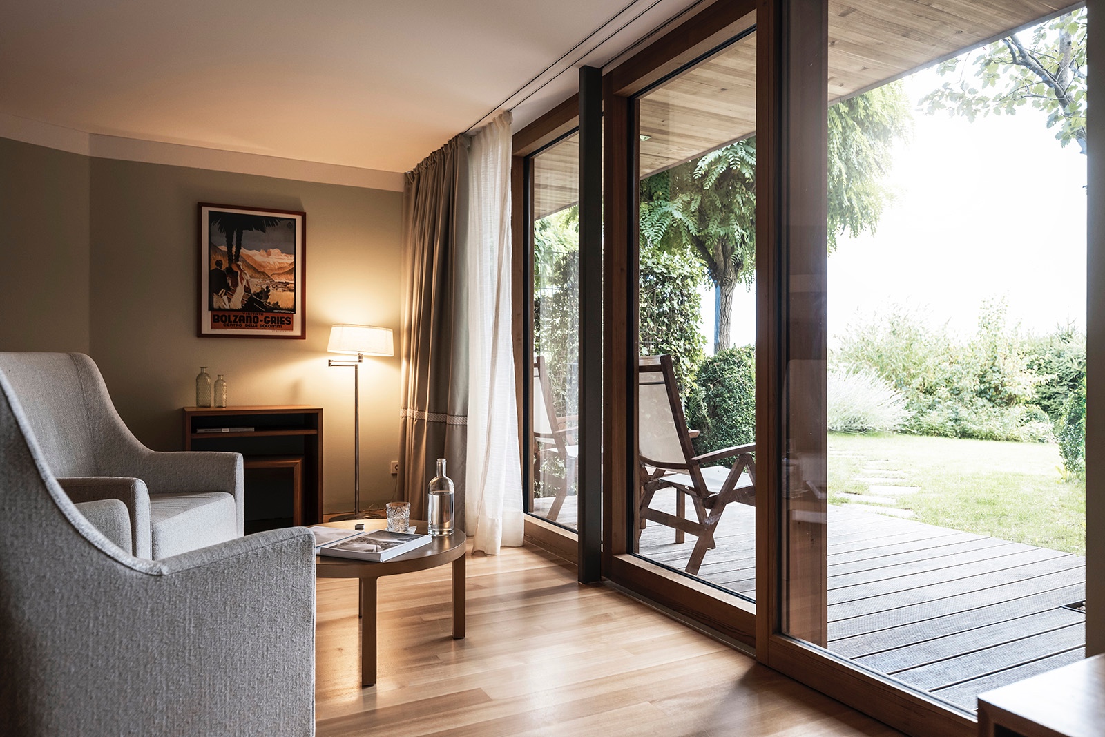 Die Junior Suiten Eden befinden sich im neuen Bergmeisterflügel. Sie sind zum Süden ausgerichtet und verfügen über eine großzügige Gartenterrasse, wo ungestört die atemberaubende Aussicht auf die Dolomiten, ...