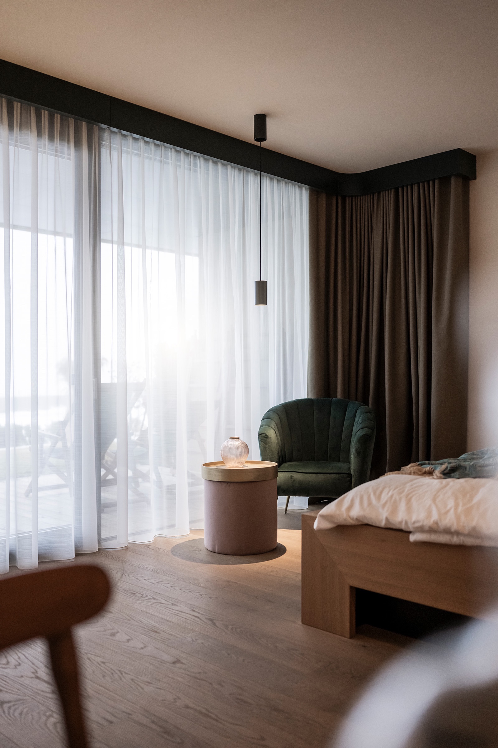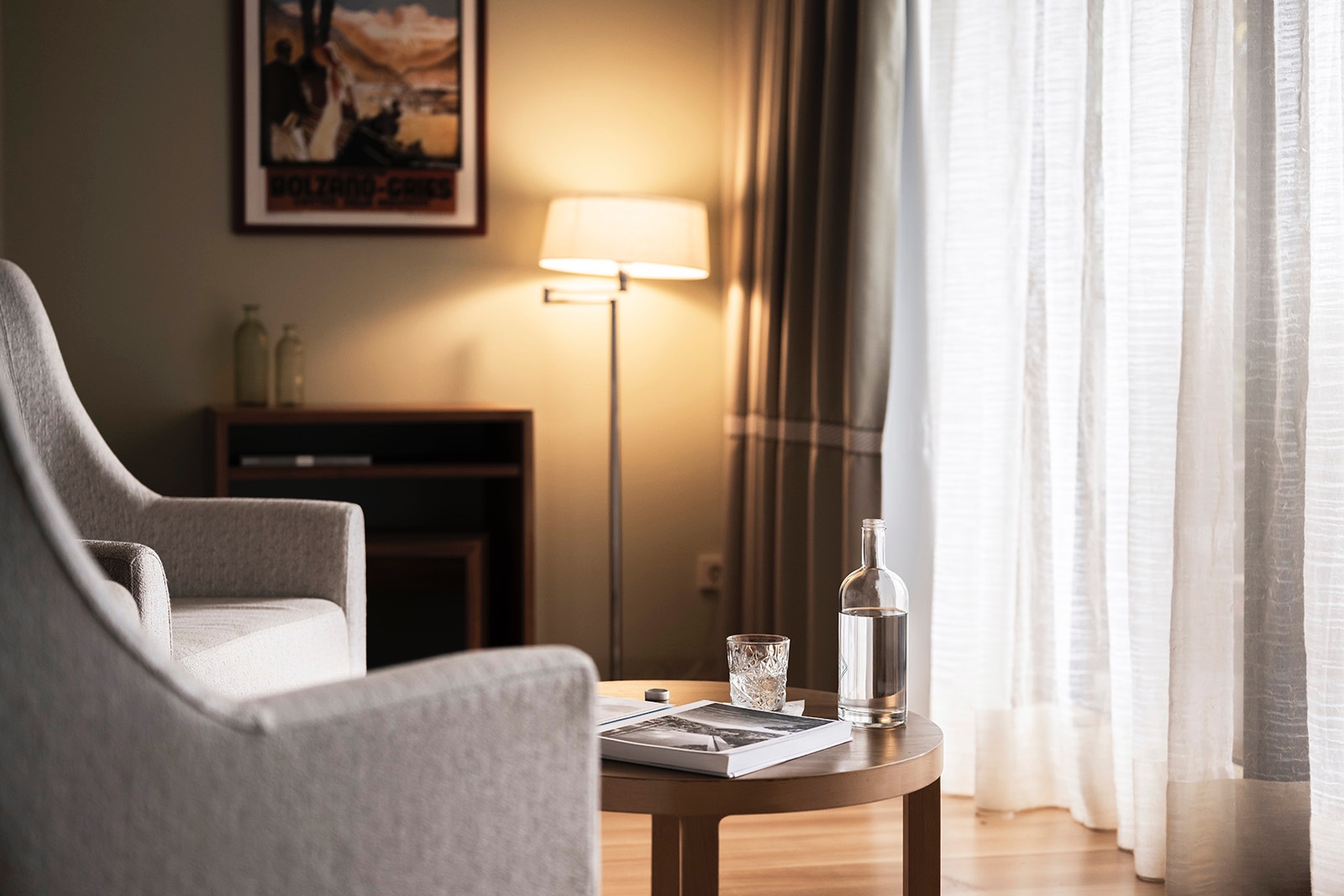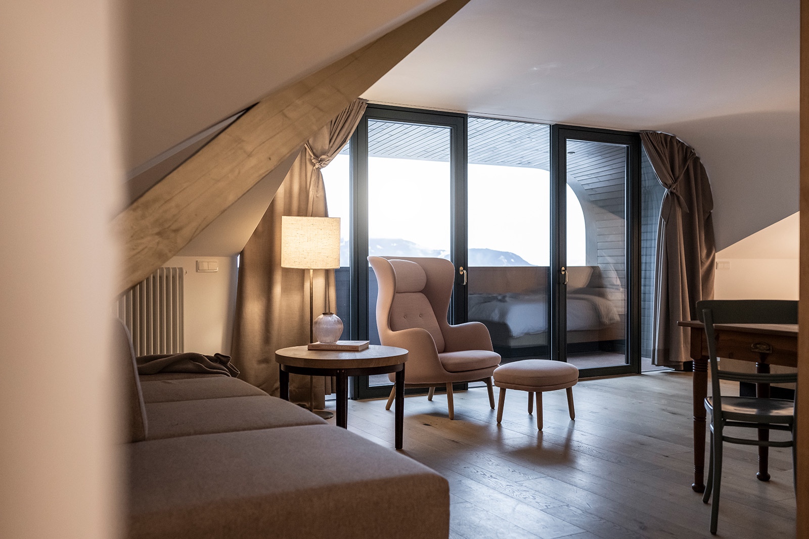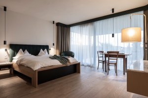 Die Junior Suiten Eden befinden sich im neuen Bergmeisterflügel. Sie sind zum Süden ausgerichtet und verfügen über eine großzügige Gartenterrasse, wo ungestört die atemberaubende Aussicht auf die Dolomiten, ...