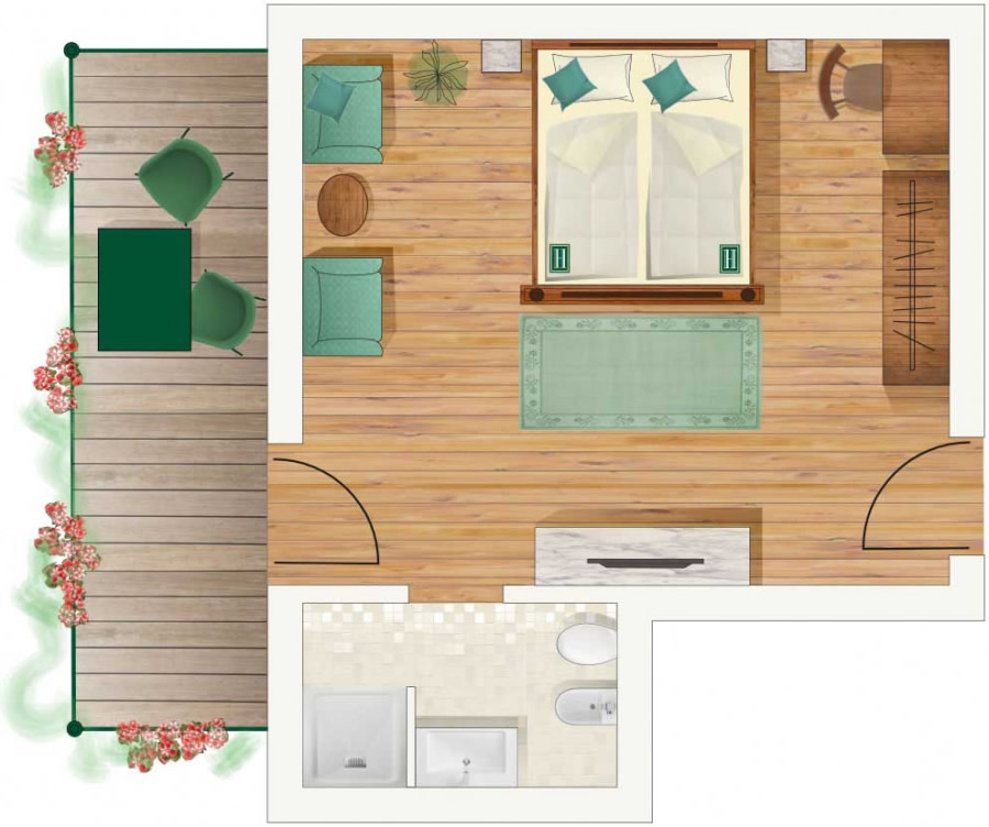 Die 2023 rundum erneuerten Doppelzimmer Jugendstil im Haupthaus erstahlen nunmehr mit Dielenböden aus heimischer Esche, stilvollen Bädern und der wohltuenden Farbwelt des Jugendstils in neuem Glanz. Die behutsame Restaurierung der Zimmer ergänzt die original Jugendstil-Ausstattung für ein einzigartiges Wohlfühl-Ambiente. Alle Jugendstil-Zimmer liegen auf der Südseite des Hauses und verfügen über einen Balkon mit atemberaubender Aussicht auf die Südtiroler Bergwelt und das Weltnaturerbe der Dolomiten. Gäste, die den authentischen Jugendstil und die wohltuende Aussicht auf die Berge zu schätzen wissen, werden sich in diesen Zimmern besonders wohlfühlen.