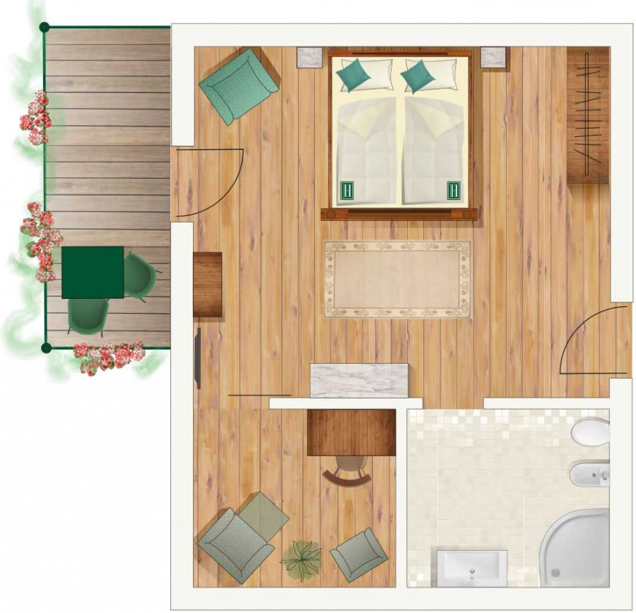 Die historischen Jugendstil Family-Zimmer befinden sich in unserem Haupthaus. Sie liegen im dritten Stock auf der Südseite des Hauses und verfügen über einen Balkon mit atemberaubender Aussicht auf die Südtiroler Bergwelt und das Weltnaturerbe der Dolomiten. Dank des kleinen Zusatzzimmers werden sich hier Kleinfamilien, die Intimität, authentischen Jugendstil und die wohltuende Aussicht auf die Berge zu schätzen wissen, besonders wohlfühlen. Ein Großteil der Zimmerausstattung sind originale Jugendstil-Stücke.